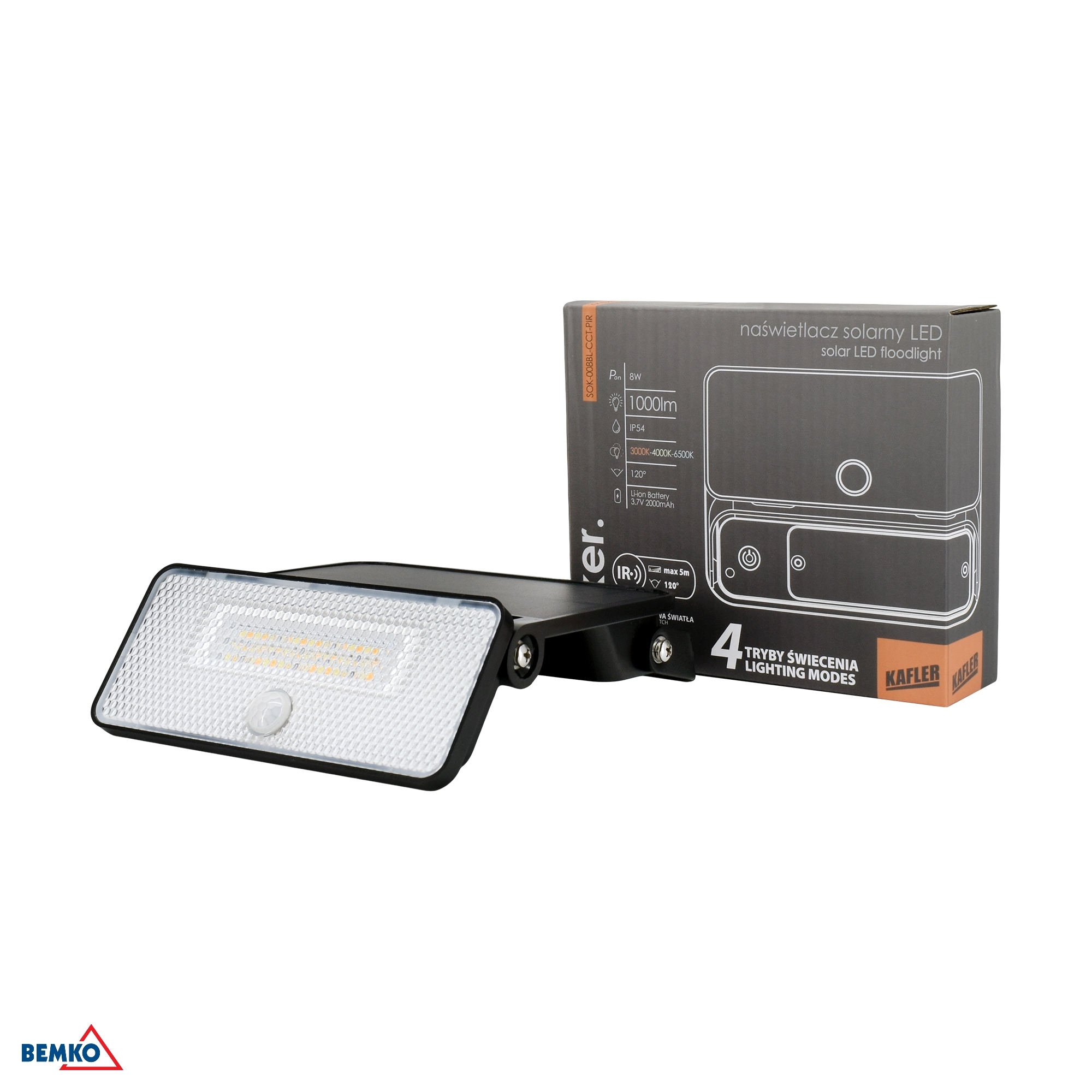 NAŚWIETLACZ SOLARNY LED SOKER 8W 1000LM 3000K/4000K/6500K IP54 CZARNY CZ. PIR